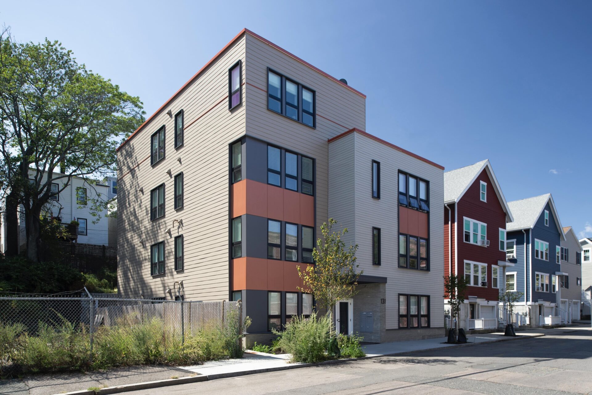The creation of this much needed family housing is an important step towards revitalizing the Condor Street and Chelsea Creek area. NOAH and Joy Squared worked closely with the community in planning and designing for the future of the site as a live-work artist community. The exterior design is contemporary, while respecting the scale and tradition of the nearby triple-decker housing. Large windows, rear decks, and landscaping create an open and inviting living environment.